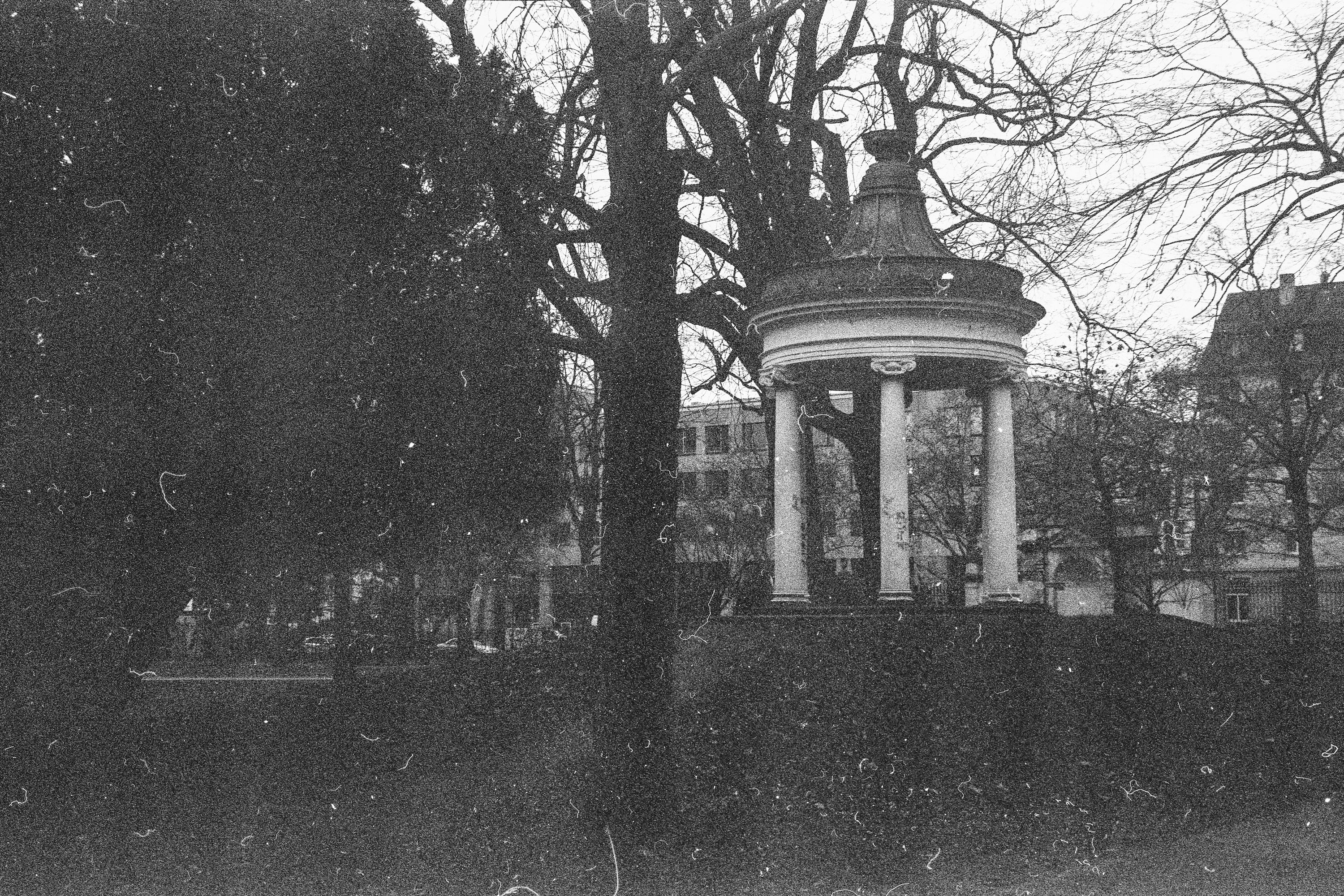 Hatte versucht mit Blende 22 ein größtmögliche Schärfentiefe hinzubekommen. Daher auch ISO 3200. Aber ich muss sagen, selbst mit dem Delta 3200 Pro ist mir das ein wenig zu grobkörnig. Ich glaube auch nicht mit den entwickelten Negativen brauchbare Cyanotypie-Kontaktabzüge hin zu bekommen. Der nächste Versuch wird dann nur bis ISO 1600 unternommen.